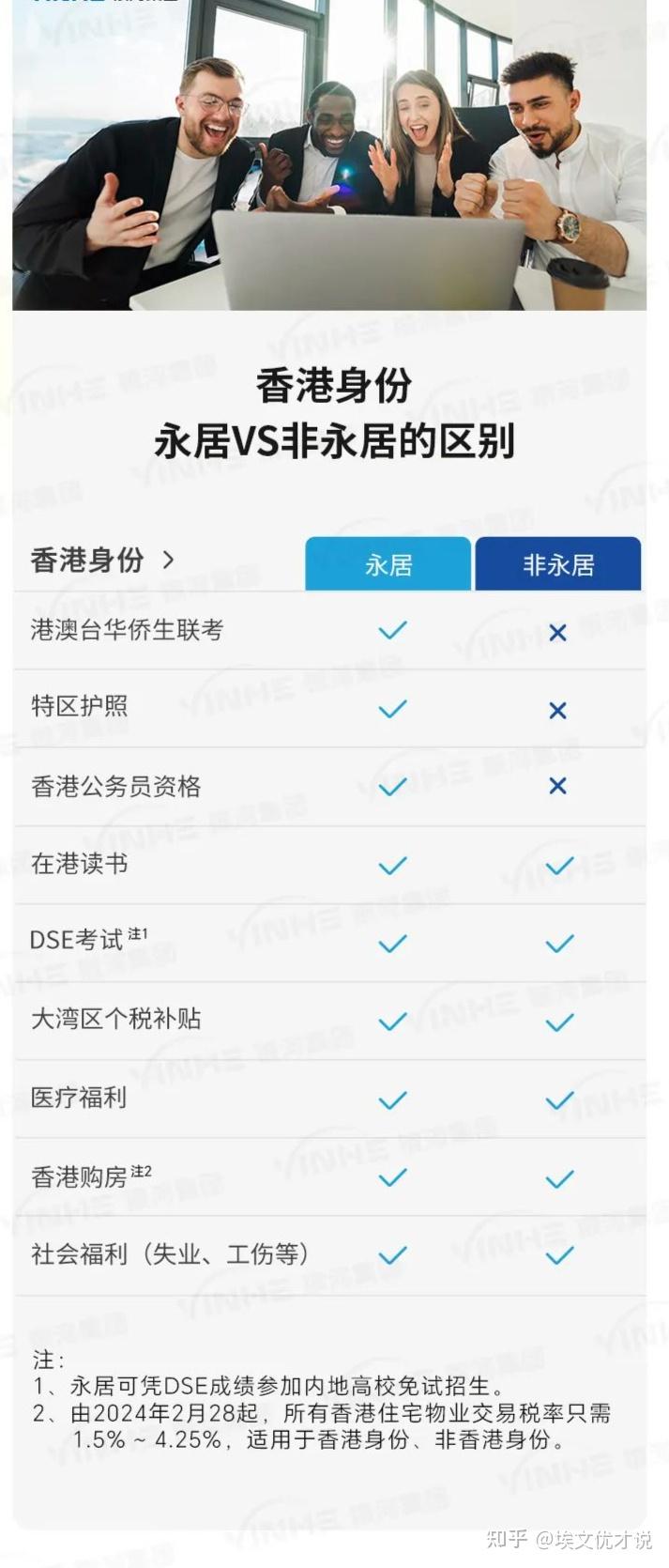 一张图来说明香港永居身份和非永居身份的区别和权益优势: