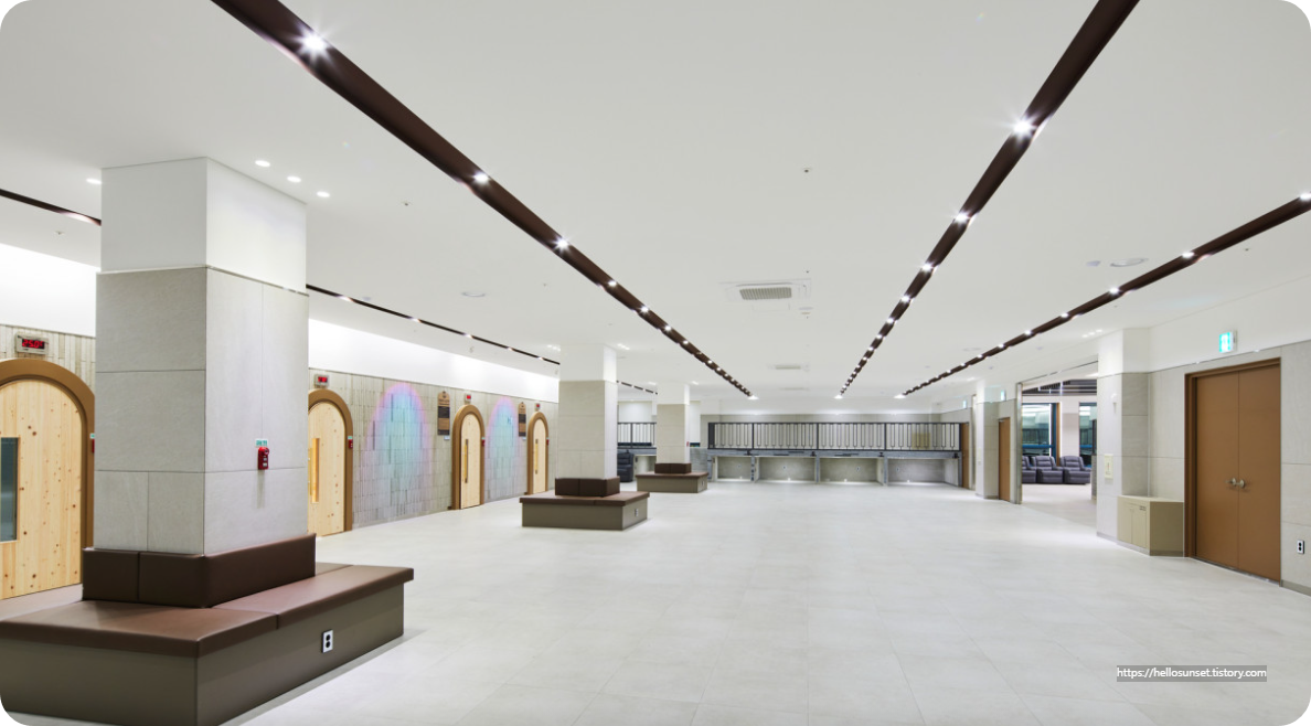 한국식 찜질방과 현대적 디자인 요소를 접목시킨 공간이라고 하는데요다양한 프로그램이 있다고 하고휴식와 안정을 취할 수 있는곳이라고 합니다.