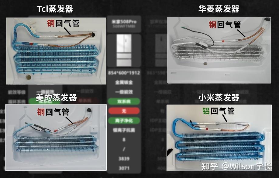 其实在电商平台也能查到,这个品牌也有自己的冰箱,但大都是千元左右的低端机。这两款都是双系统加上主动除菌,不过都没有全宽果蔬抽屉,从拆机来看,我之前拆过TCL、华凌、美的以及容声等等,基本蒸发器的回气管全都是铜的,小米这款是铝的,