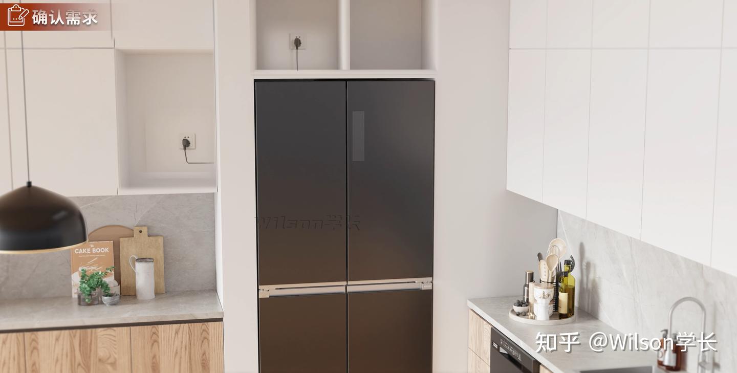 记得冰箱电源最好预留在侧柜;如果你想独立摆放在厨房或者餐厅,那就建议选择非零嵌,毕竟同一品牌性能相同的冰箱,零嵌要比非零嵌贵1000多,
