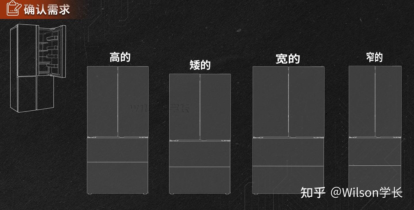 冰箱,它的尺寸实在太多了,有高的、矮的;宽的、窄的;