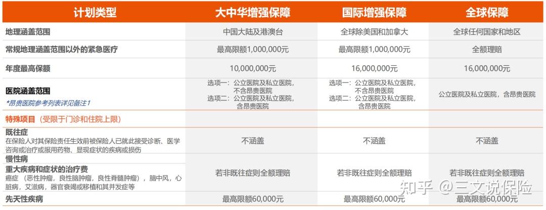 高端医疗:卓越智选/臻选计划,卓越环球,尚越全球等