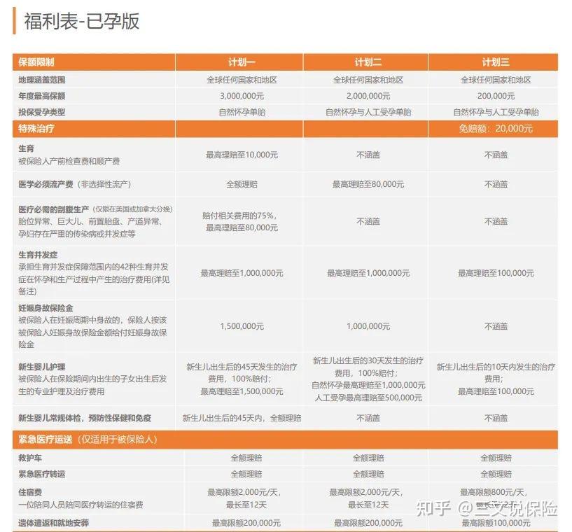 这也是大部分客户会选择的计划,保障责任相对全面。给了8万的医学必须流产额度,也含100万的妊娠身故保险金,新生儿的护理治疗费是限30天内,这个时间差不多是够用的。