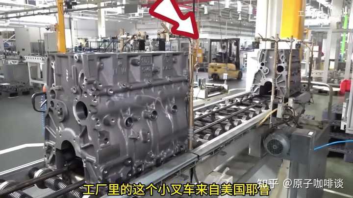 发动机组装线由德国蒂森克鲁伯制造。扭力扳手由德国利施勒生产。产线操作系统由德国西门子提供。黄色夹具平台由意大利易德维制造。办公桌打印机来自美国惠普。工人驾驶的小型牵引车由德国永恒利生产。