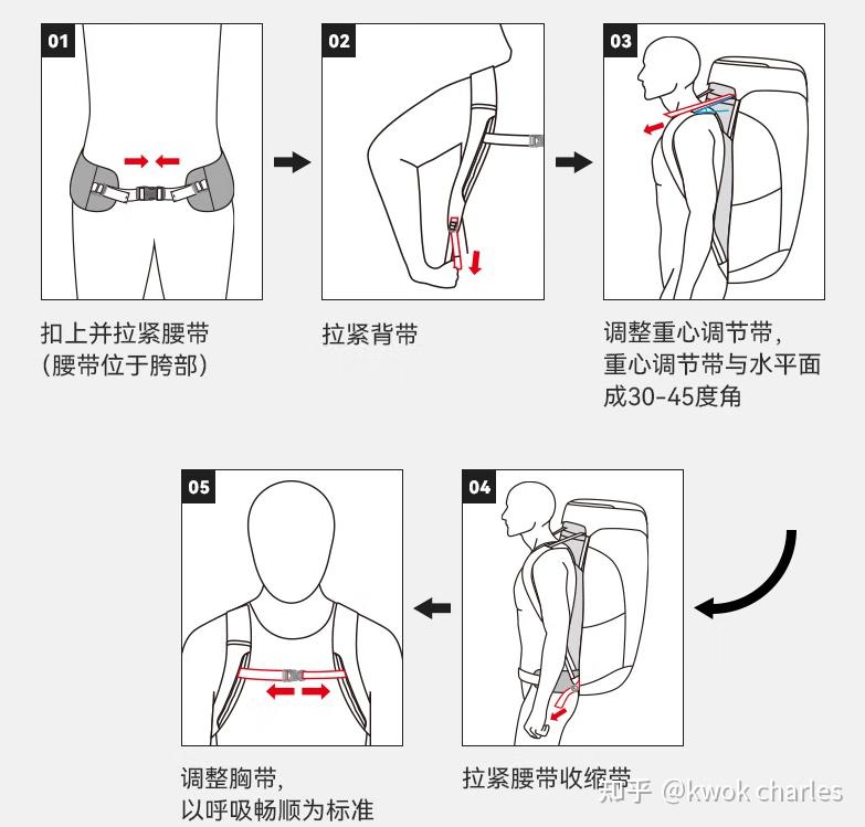 一般来说,前几次背髋骨可能有点疼,每次停下来休息时就可以做一些调整,慢慢就能找到最适合你的使用状况和调整方式了。同时,在不同的地形上,如上坡、下坡、平路,都可以随时调整腰带和负重带的松紧来合理分布重量,让你的身体各个部分得到轮流休息。