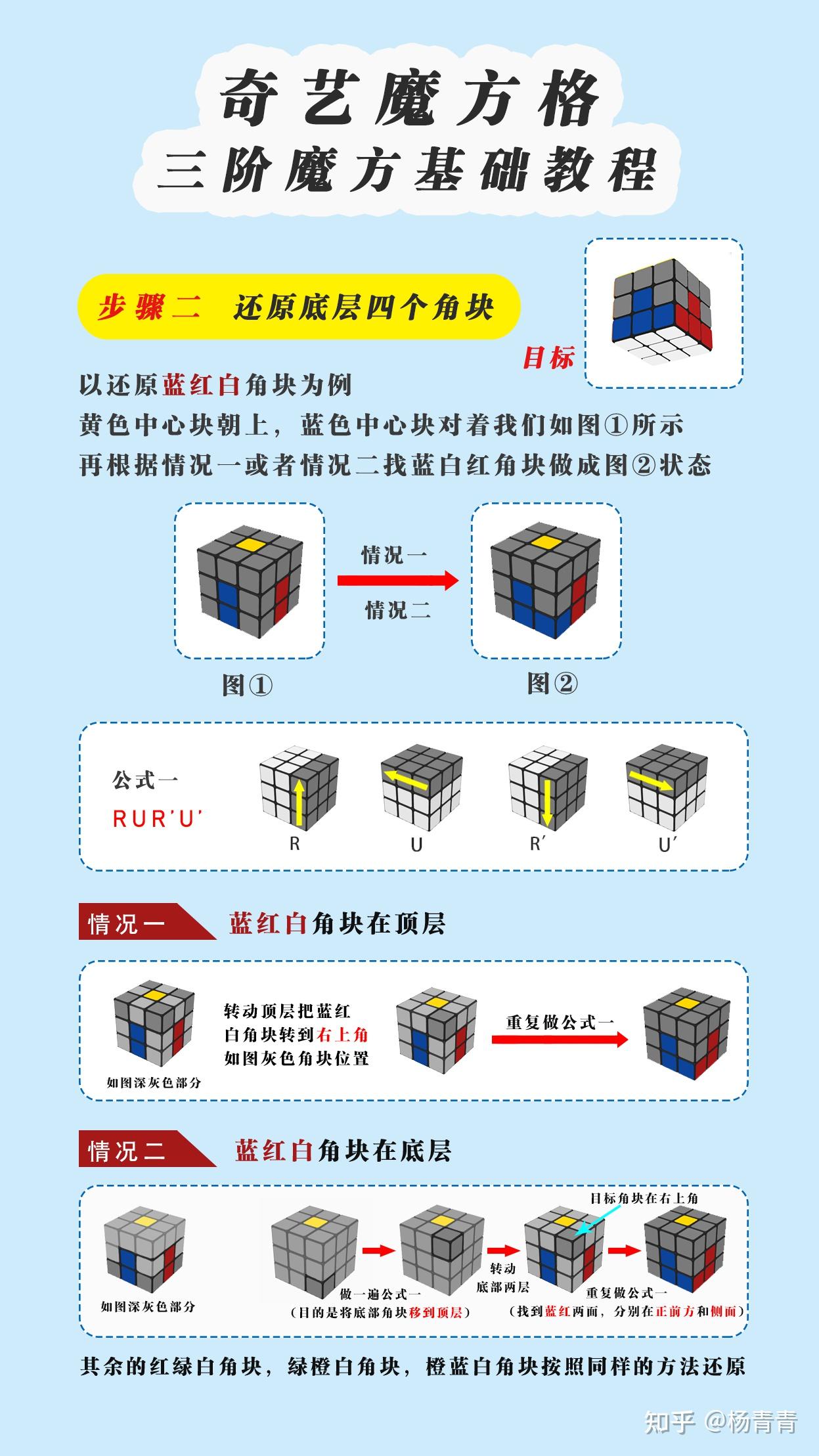 这个图文说明书跟我之前发布的公式有不一样的地方,本身魔方还原公式就不是有固定答案的,根据个人的习惯来吧。