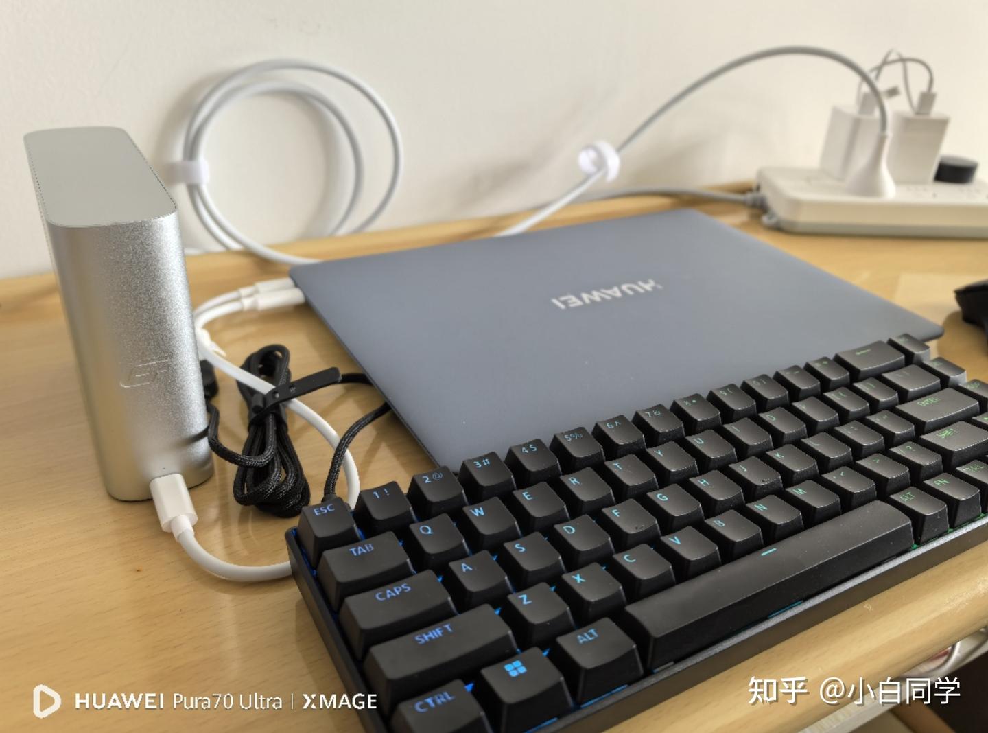 ③与旧款matebook完美匹配,相较于市面上形形@的外置显卡扩展方式,更为省事便捷。在此,建议额外购买一条支持240w的usb4长线,将设备放置得稍微远一点。这样,在低负载时,全然没有噪音;即使处于高负载状态,噪音也难以听清。