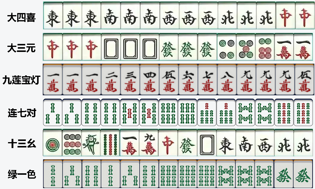大胡:七巧对:收集完七张对牌,即可胡牌。