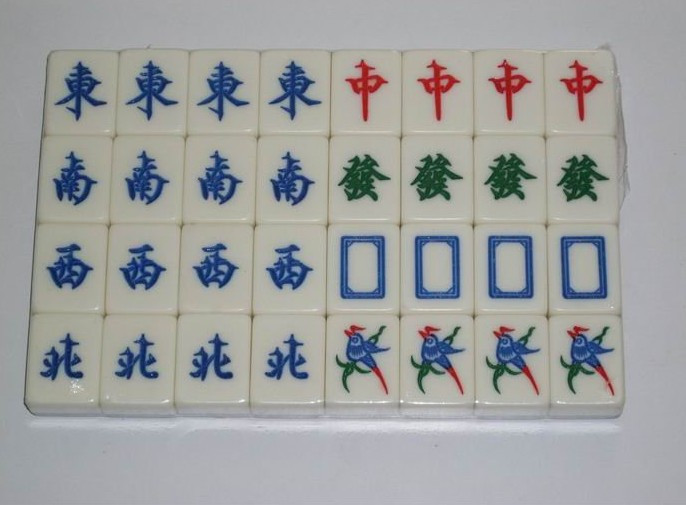 2、箭牌:中(红中)、发(发财)、白(白板),各4张,共12张。