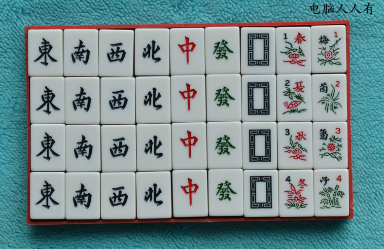 注:这种牌很少种类的麻将会用到。大多数地区都不使用花牌。