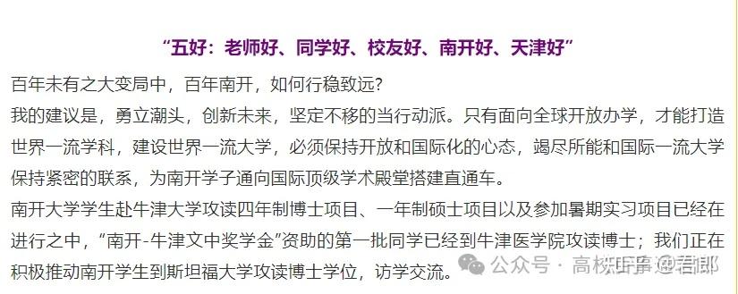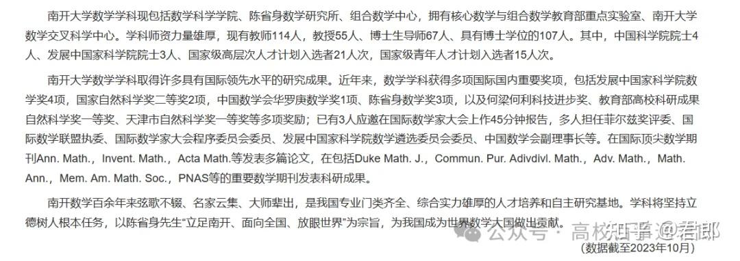 而且南开大学数学学院非常注与海外的交流联系,在23年与牛津大学达成合作,正在与斯坦福大学推动合作,以及前些年与加州大学伯克利达成合作,南开数学国际化做的是非常好的。而南开大学海外申请出路也是国内前几。仅次于清华大学,北京大学,中国科学技术大学,浙江大学等寥寥几校,而生源本身差距就大,所以能够有这个出路,已经超出了本分段的价值,可以说南开大学数学分数是被严重低估的。