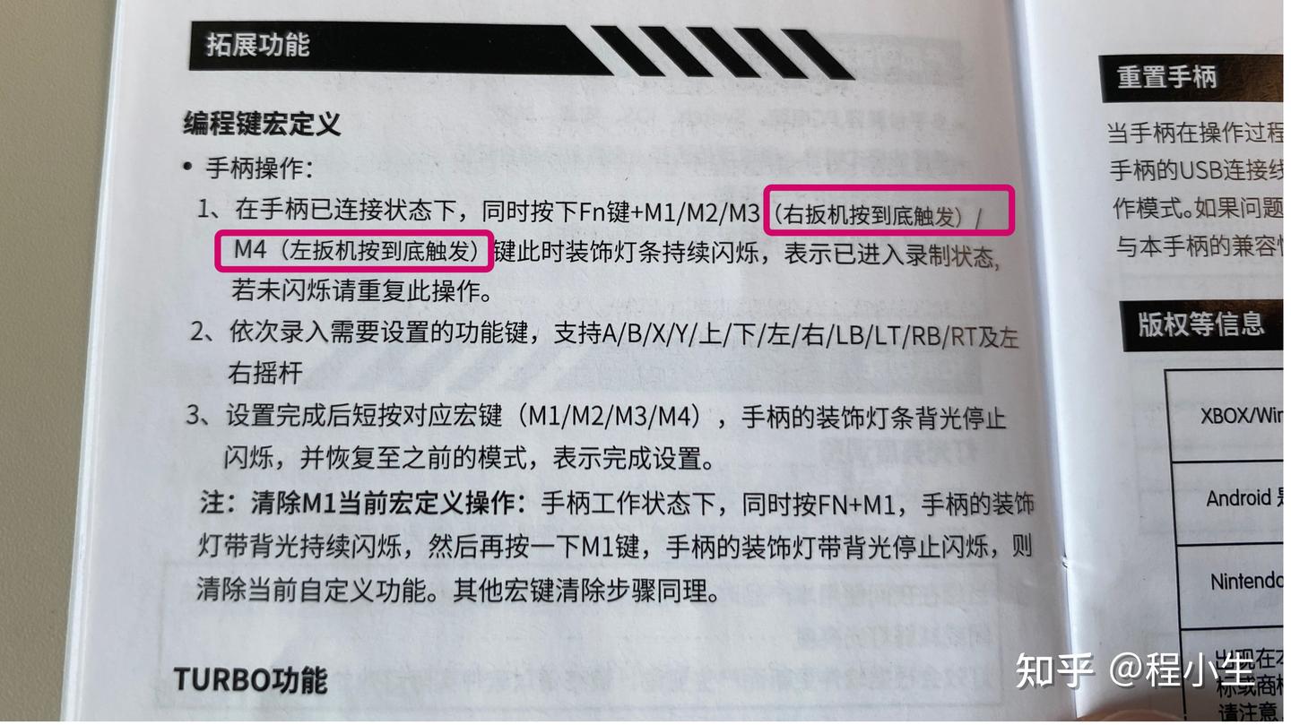 M1/M2可以映射手柄按键(A/B/X/Y/上/下/左/右/LB/LT/RB/RT/左摇杆/右摇杆),也可设置42个动作以内的宏编程。