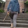 一手拿着手机在吹,另一手反复的抖动裤子,尽量让湿裤子有空气流通空间,以求快点吹干。