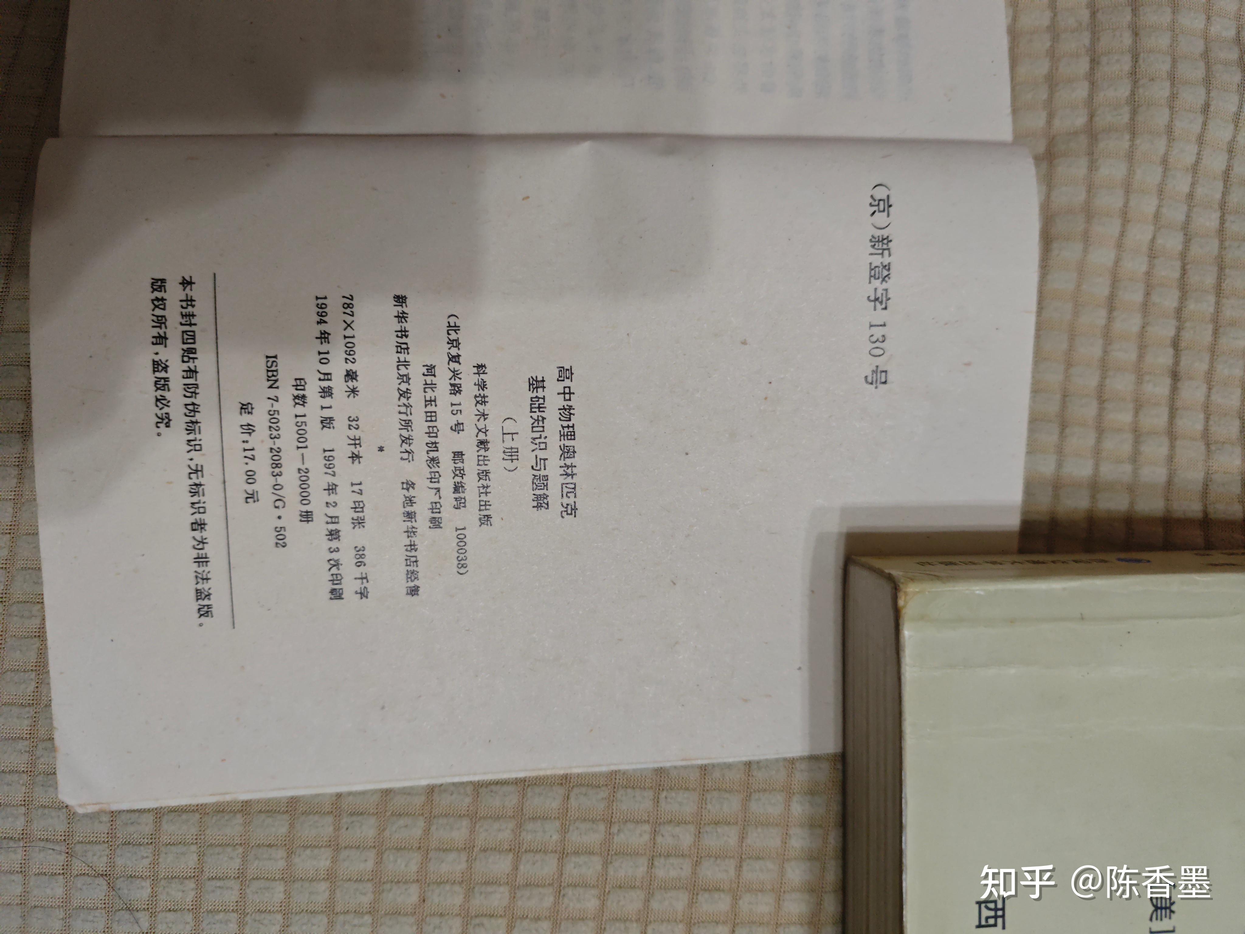 关于肖涵买不起奥数书,这段简直把我气笑了。首先在上海只有你能力不济搞不了奥数,就没听说过买不起教科书学不了奥数的。下面这本是97年出版的奥数书有数学物理化学一共五册,单价是17元一本。对于要省赛得奖可能不够用,对于要直升交大足够用,对于想高考进交大,华师大出版社的一课一练精讲就够用,一课一练现在网上也就20几元一本,当年也就十几元。同时对于成绩好的的学生上海有业余物理学校,业余数学学校,只有考不上的,没有读不起的。
