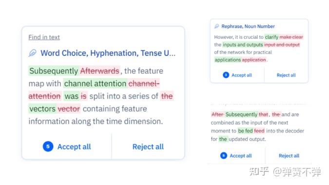 测评中,ChatGPT、Paperpal、QuillBot对此错误都校正准确。Grammarly对单复数未作改动,既没能判断单句中的词性词意,对上下文用词一致性的把握也欠火候。