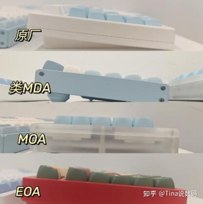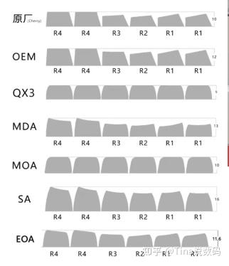 键帽有很多高度,比如原厂CherryOEMMDA等,还有现在的圆润键帽各种oa高度,MOAEOASOA 等等。