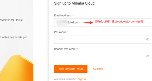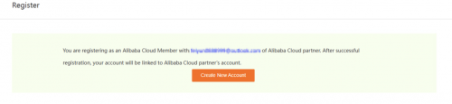 点击邮件中的"click here"注册链接,跳转到阿里云官网,选择创建新账号