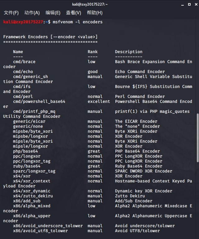 msfvenom查看该命令的参数详情,选用msfvenom -l encoders查看编码器情况。