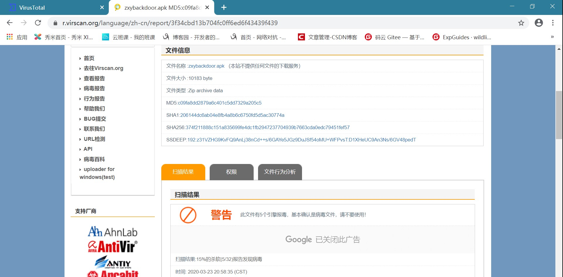 - 关于网站VirSCAN和Virus Total