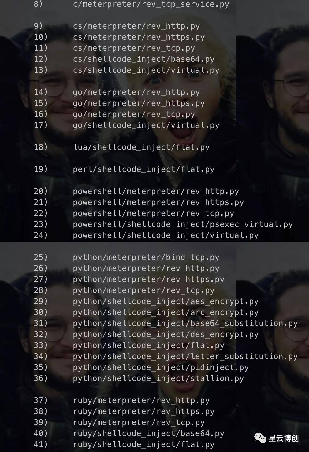 切换到如下的Evasion模块下,执行list 可以看到41个stager