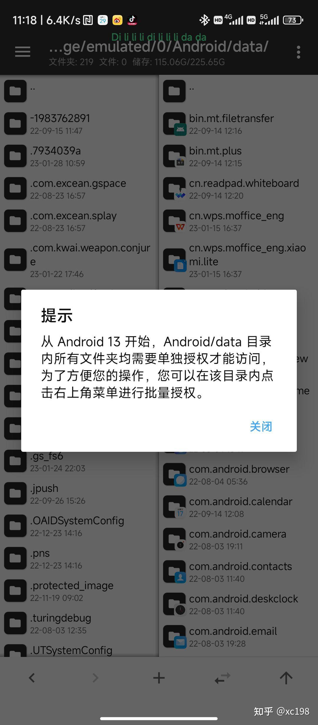 不过好在请求Android/data下的子目录(也就是Android/data/(包名)的权限是可以的,已经有应用适配了安卓13的这项特性,例如MT管理器就可以。