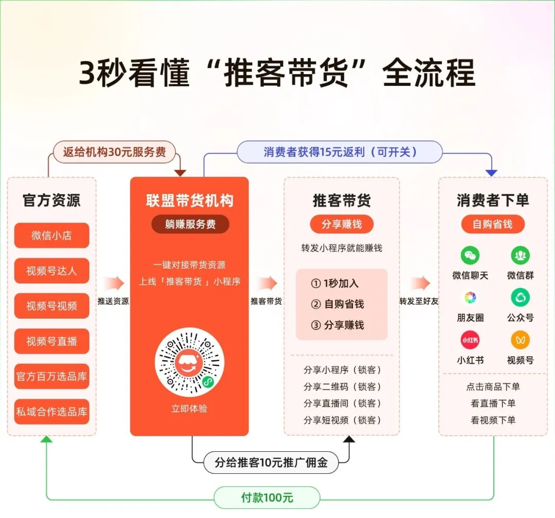 微信官方给微信小店商家和带货方搭的桥梁,跟淘宝联盟差不多!