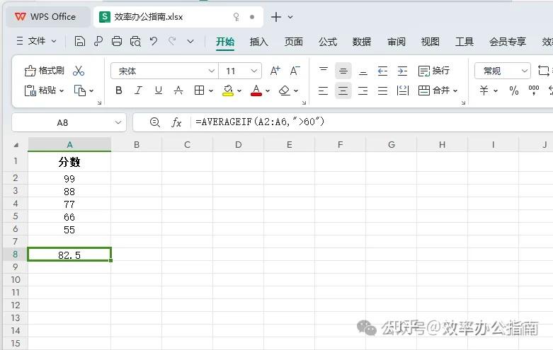 AVERAGEIF:=AVERAGEIF(条件范围条件[数据范围])AVERAGEIFS:=AVERAGEIFS(数据范围条件范围1条件1[条件范围2条件2]...)统计60分以上分数的平均值
