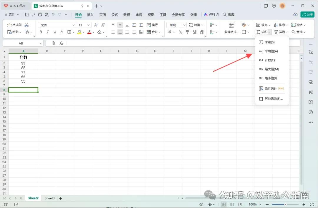 Excel 的“开始”选项卡提供了一个快速计算平均值的工具。