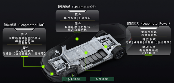 零跑汽车自创立以来,七年笃定坚持全域自研路线,如今零跑进入技术成果爆发期——自研自造智能电动汽车核心系统及电子部件中的关键软硬件,实现了智能电动汽车“新三大件”:电池包、电机、电控系统的全域自研自造,形成了围绕智能驾驶、智能座舱、智能动力,构建智能汽车完全体的全域自研研发体系。