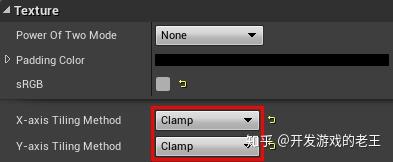 将其X-axis Tiling Method和Y-axis Tiling Method都设置为Clamp