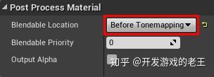 打开PP_CelShader并确认你没有选择任何东西,然后再其细节面板找到Post Process Material将Blendable Location 设为Before Tonemapping。