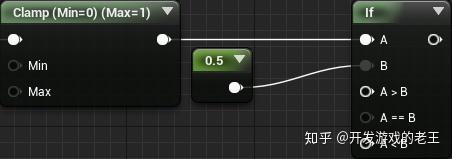 然后,使用一个Clamp节点将输出值限制在0到1之间,这样更方便我们设置(色段的)阈值了。