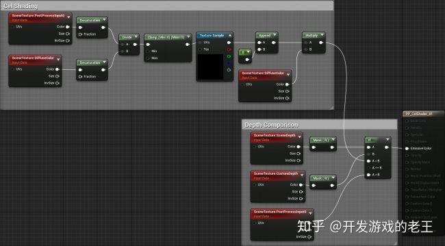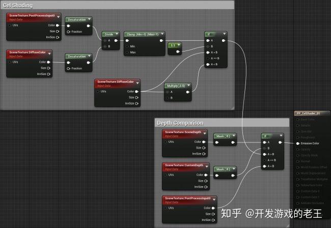 接下来进行深度对比。打开“PP_CelShader”并创建下面的节点连接: