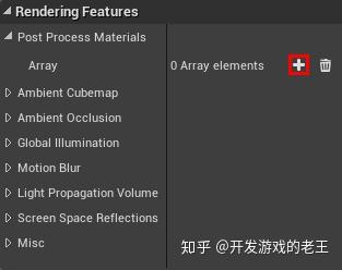 接下来,需要告诉后期处理体积使用卡通着色器。先选择后期处理体积,在其细节面板上找到Rendering Features\Post Process Materials并点击+号标记。