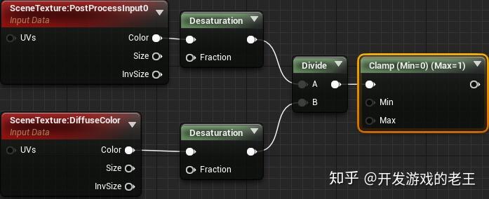 用SceneTexture:PostProcessInput0除以SceneTexture:DiffuseColor,这样光照缓冲就很简单地得到了。