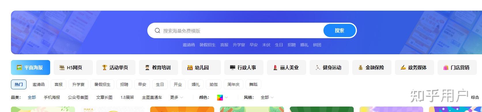 2、模板中,免费比例较高,同时拥有制定H5的功能,有利于媒体传播。