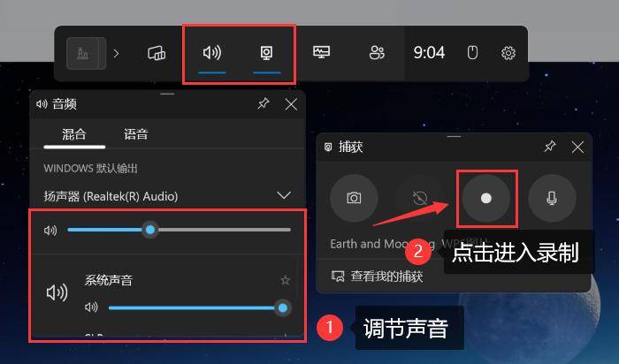- 在录屏工具中启用【录制系统声音】或【录制麦克风】。