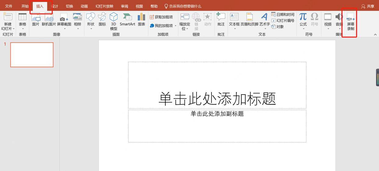 方法二:使用【PowerPoint自带录屏功能】