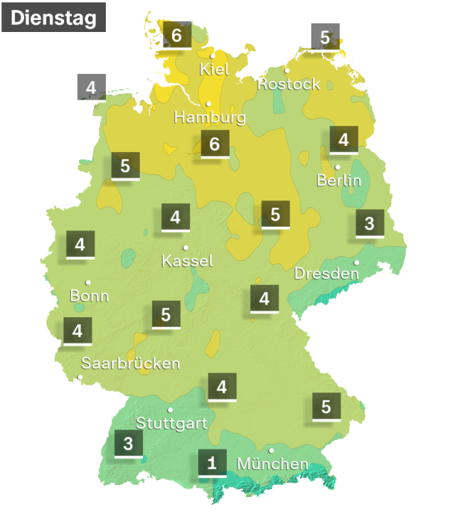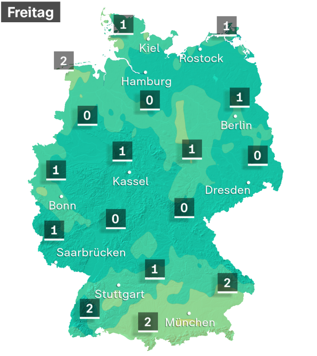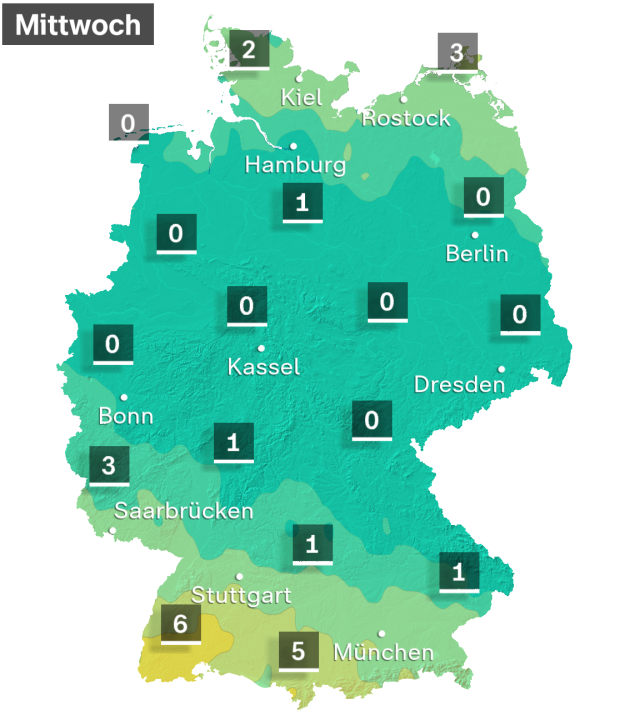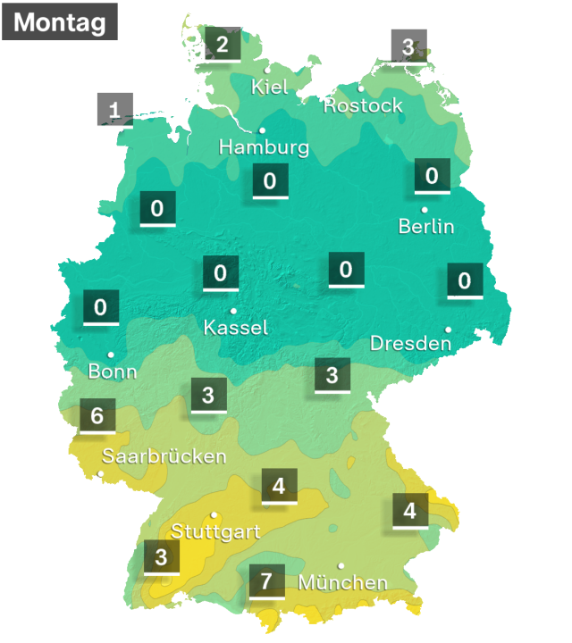 Für mit * markierte Orte gibt es keine Messwerte. In diesen Fällen werden die Daten berechnet.