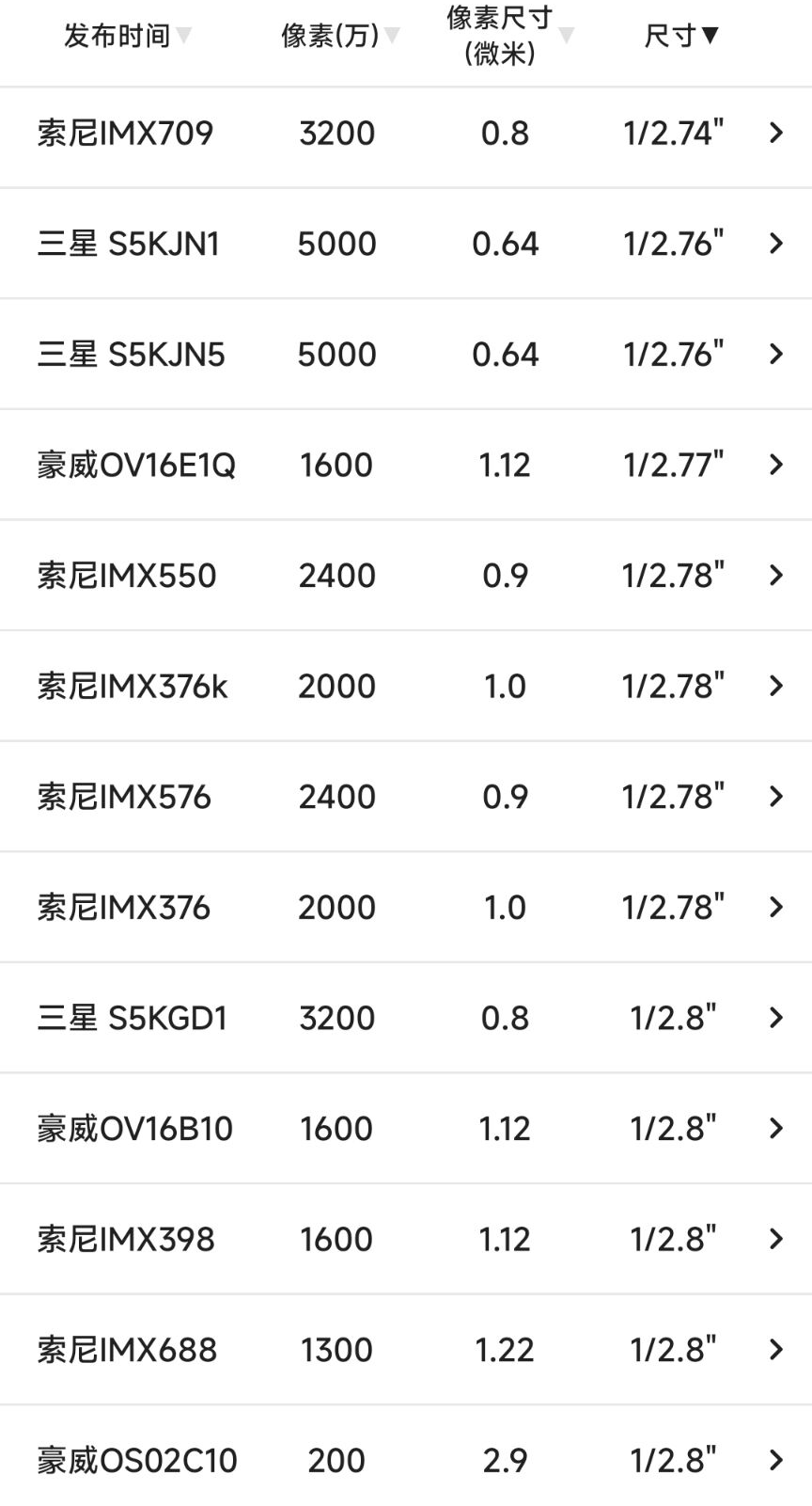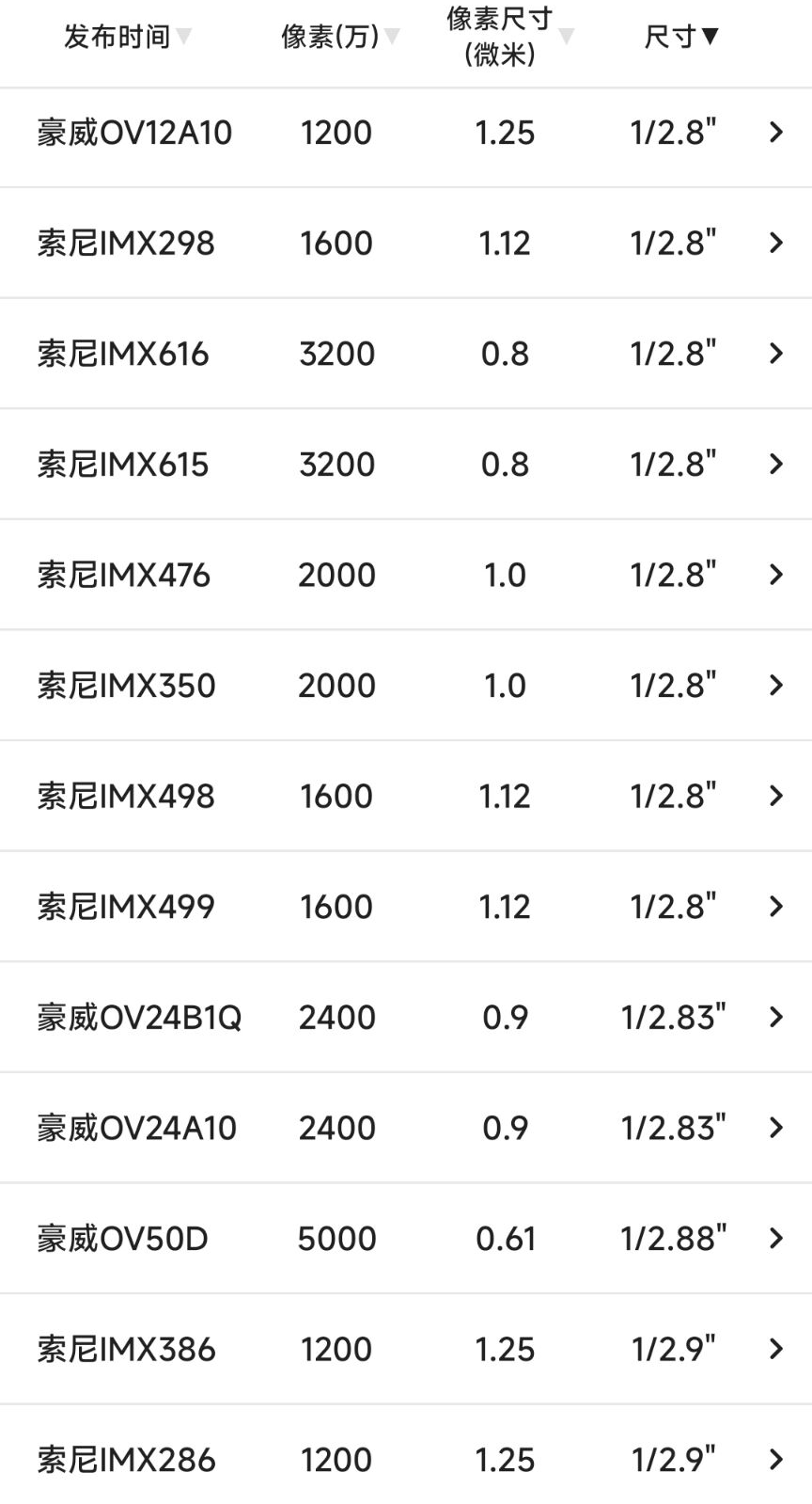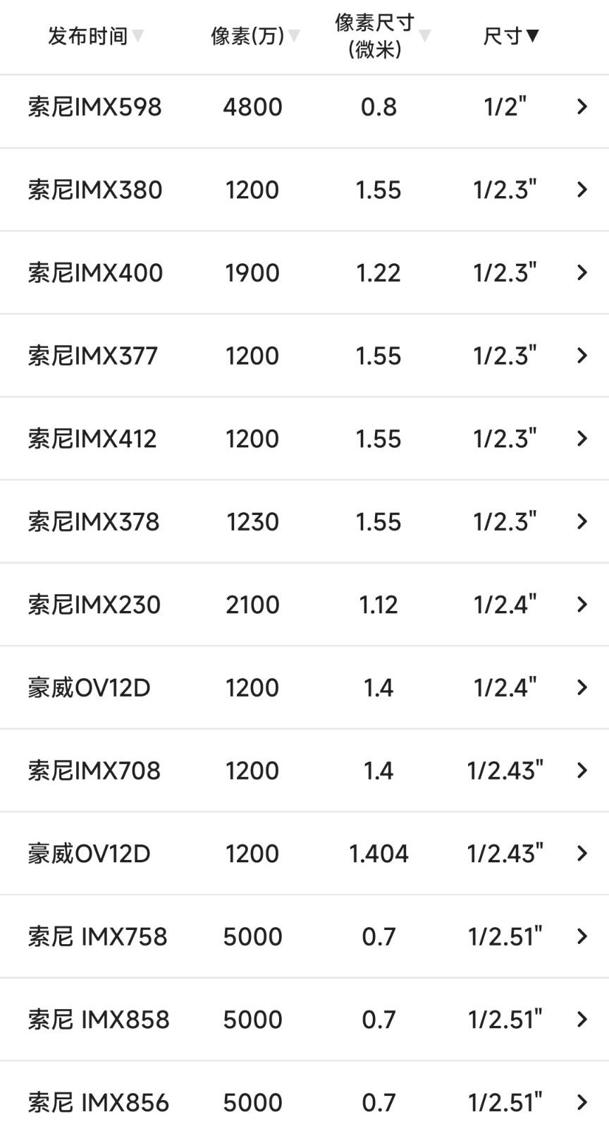 索尼旗下,开头几乎是IMX,但数字命名太乱了;