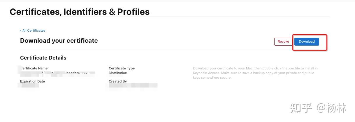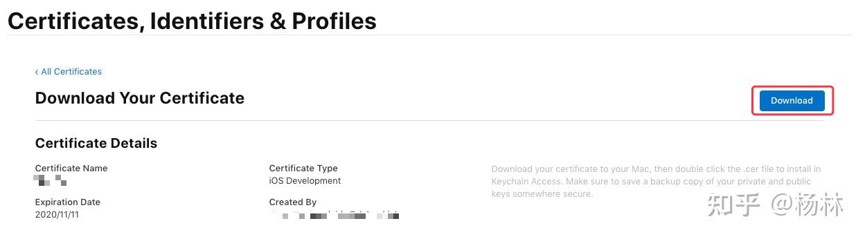 生成证书后选择 “Download” 将证书下到本地 (ios_development.cer):