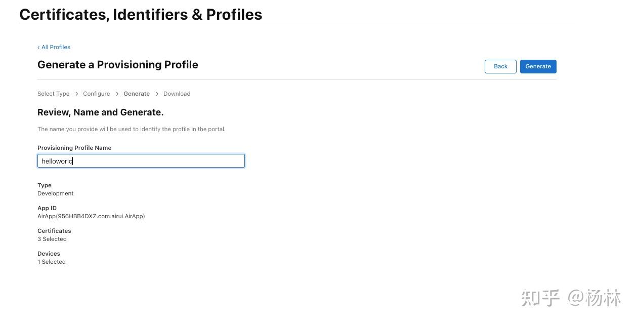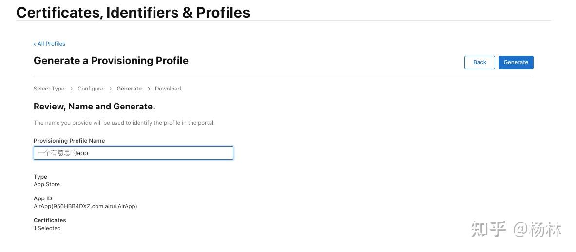 接下来输入描述文件的名称点击 “Generate” 生成描述文件: