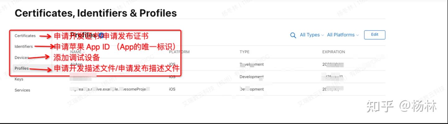 | 发布(Distribution)证书和描述文件 | 用于提交 AppStore, |