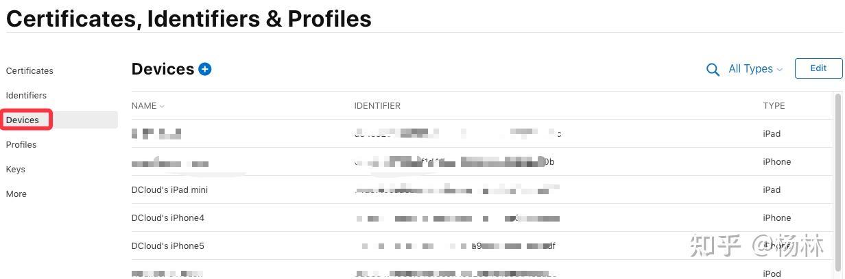 在证书管理页面选择 “Devices”,可查看到已添加的所有设备信息,点击页面上的加号来添加一个新设备: