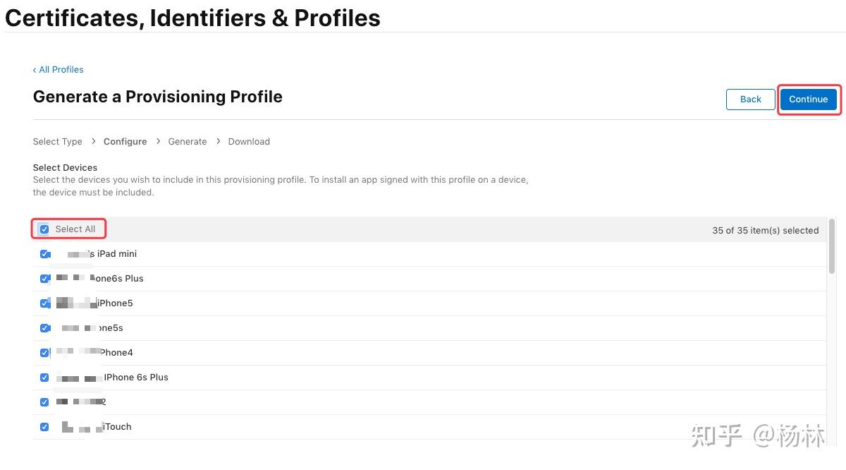 选择授权调试设备,这里建议直接勾选 “Select All”,点击 “Continue”:
