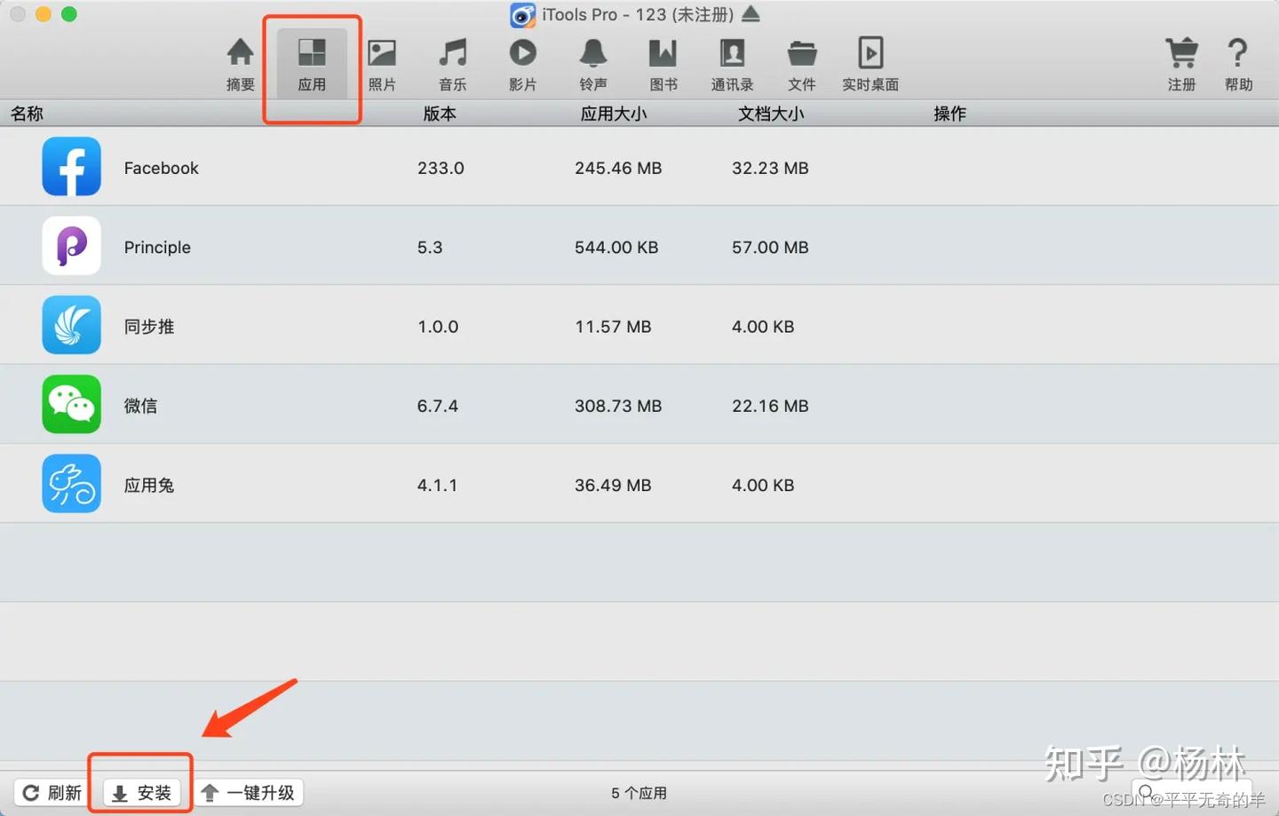 打开iTools,选择应用,点击左下角的安装,选中需要安装的ipa,点击打开,即可安装成功。也可以直接将ipa拖进去。