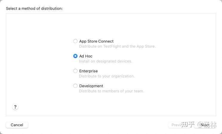 在 “Software” 栏下选中 “App Store and Ad Hoc”,点击 “Continue”:
