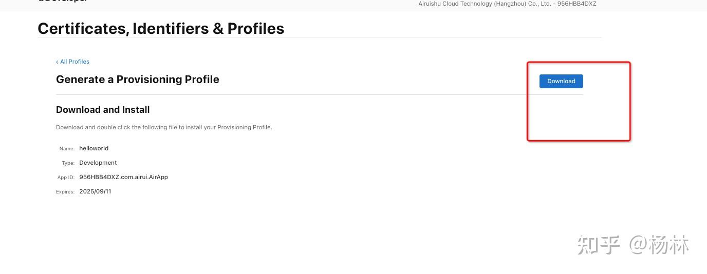 然后点击 “Download” 将描述文件下载到本地(文件后缀为 .mobileprovision)