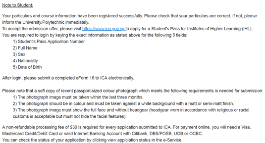 但是,建议把预约单、护照原件及复印件、IPA letter、SG入境卡、e-Form16、体检报告、缴费凭证、学生通行证规定条款原件(Terms & Conditions of Student’s Pass )、小2寸的白底照片都带上,每个窗口需要查验的资料可能会略有区别。