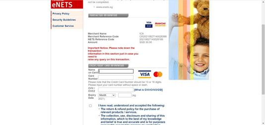 Name on card填写自己姓名全拼(大写字母)。如果确认自己卡里面有足够的新币,而且是激活时间在6个月内,但还是付款失败,可以换个浏览器试试,仍然不行的话,有可能是系统bug,可以隔天再试。
